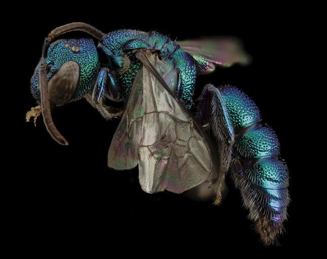 Keywords: bee bees halictidae taxonomy:genus=temnosoma temnosoma metallic metallica irridescent blue-green bluegreen argentina south america southamerica cleptoparasite nest parasite nestparasite cuckoo cuckoo bee cuckoobee beauty biml usgsbiml droege sam droege samdroege stackshot zerene stacker zerenestacker макросъемка makro マクロ природа natur 自然 الطبيعة 大自然 naturaleza natura насекомое insekt الحشرة 昆蟲 insectos native bee nativebee black background animal indoor Temnosoma, Unknown Metallic Cuckoo Bee, collected in Argentina. A metallic green bee similar to many metallic green bees in the Sweat Bee family Halictiadae, but if you were to look at one under the microscope you would find that the female has no pollen collecting hairs and thus would probably conclude that it is a bee but one that does not collect pollen and therefore it must be a nest parasite and you would be right. These bees lay their eggs in the nests of close relatives. Something else you would notice would be the large number of craters on the surface of this bee’s exoskeleton – these doubtless help trap any sharp sting or mandible tip of a host bee that the cuckoo discovers while attempting to do its darstadly deeds. This group of 7 species occurs from the United States down to Argentina. ~~~~~~~~~~{{{{{{0}}}}}}~~~~~~~~~~ All photographs are public domain, feel free to download and use as you wish. Photography Information: Canon Mark II 5D, Zerene Stacker, Stackshot Sled, 65mm Canon MP-E 1-5X macro lens, Twin Macro Flash in Styrofoam Cooler, F5.0, ISO 100, Shutter Speed 200 Further in Summer than the Birds Pathetic from the Grass A minor Nation celebrates Its unobtrusive Mass. No Ordinance be seen So gradual the Grace A pensive Custom it becomes Enlarging Loneliness. Antiquest felt at Noon When August burning low Arise this spectral Canticle Repose to typify Remit as yet no Grace No Furrow on the Glow Yet a Druidic Difference Enhances Nature now -- Emily Dickinson Want some Useful Links to the Techniques We Use? Well now here you go Citizen: Basic USGSBIML set up: www.youtube.com/watch?v=S-_yvIsucOY USGSBIML Photoshopping Technique: Note that we now have added using the burn tool at 50% opacity set to shadows to clean up the halos that bleed into the black background from "hot" color sections of the picture. www.youtube.com/watch?v=Bdmx_8zqvN4 PDF of Basic USGSBIML Photography Set Up: ftp://ftpext.usgs.gov/pub/er/md/laurel/Droege/How%20to%20Take%20MacroPhotographs%20of%20Insects%20BIML%20Lab2.pdf Google Hangout Demonstration of Techniques: plus.google.com/events/c5569losvskrv2nu606ltof8odo or www.youtube.com/watch?v=4c15neFttoU Excellent Technical Form on Stacking: www.photomacrography.net/ Contact information: Sam Droege sdroege@usgs.gov 301 497 5840 Temnosoma, Unknown Metallic Cuckoo Bee, collected in Argentina. A metallic green bee similar to many metallic green bees in the Sweat Bee family Halictiadae, but if you were to look at one under the microscope you would find that the female has no pollen collecting hairs and thus would probably conclude that it is a bee but one that does not collect pollen and therefore it must be a nest parasite and you would be right. These bees lay their eggs in the nests of close relatives. Something else you would notice would be the large number of craters on the surface of this bee’s exoskeleton – these doubtless help trap any sharp sting or mandible tip of a host bee that the cuckoo discovers while attempting to do its darstadly deeds. This group of 7 species occurs from the United States down to Argentina. ~~~~~~~~~~{{{{{{0}}}}}}~~~~~~~~~~ All photographs are public domain, feel free to download and use as you wish. Photography Information: Canon Mark II 5D, Zerene Stacker, Stackshot Sled, 65mm Canon MP-E 1-5X macro lens, Twin Macro Flash in Styrofoam Cooler, F5.0, ISO 100, Shutter Speed 200 Further in Summer than the Birds Pathetic from the Grass A minor Nation celebrates Its unobtrusive Mass. No Ordinance be seen So gradual the Grace A pensive Custom it becomes Enlarging Loneliness. Antiquest felt at Noon When August burning low Arise this spectral Canticle Repose to typify Remit as yet no Grace No Furrow on the Glow Yet a Druidic Difference Enhances Nature now -- Emily Dickinson Want some Useful Links to the Techniques We Use? Well now here you go Citizen: Basic USGSBIML set up: www.youtube.com/watch?v=S-_yvIsucOY USGSBIML Photoshopping Technique: Note that we now have added using the burn tool at 50% opacity set to shadows to clean up the halos that bleed into the black background from "hot" color sections of the picture. www.youtube.com/watch?v=Bdmx_8zqvN4 PDF of Basic USGSBIML Photography Set Up: ftp://ftpext.usgs.gov/pub/er/md/laurel/Droege/How%20to%20Take%20MacroPhotographs%20of%20Insects%20BIML%20Lab2.pdf Google Hangout Demonstration of Techniques: plus.google.com/events/c5569losvskrv2nu606ltof8odo or www.youtube.com/watch?v=4c15neFttoU Excellent Technical Form on Stacking: www.photomacrography.net/ Contact information: Sam Droege sdroege@usgs.gov 301 497 5840