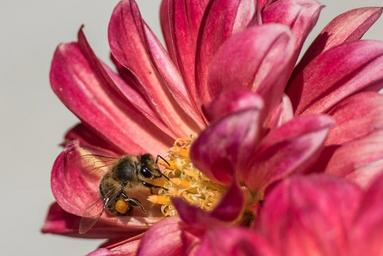Keywords: bee close honey collector summer insect blossom bloom