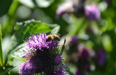 Keywords: bee diestel close insect honey nature thistle bud pollination blossom bloom flora grass meadow environmental protection