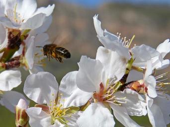 MAKE A MEME View Large Image bee flight bee flying pollen libar almond flower