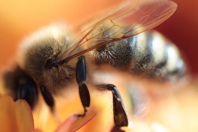 Keywords: bee flower pollen orange nectar blossom bloom macro close insect