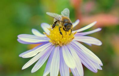 Keywords: bee herbstastern flower blossom bloom insect pollen plant macro close nature