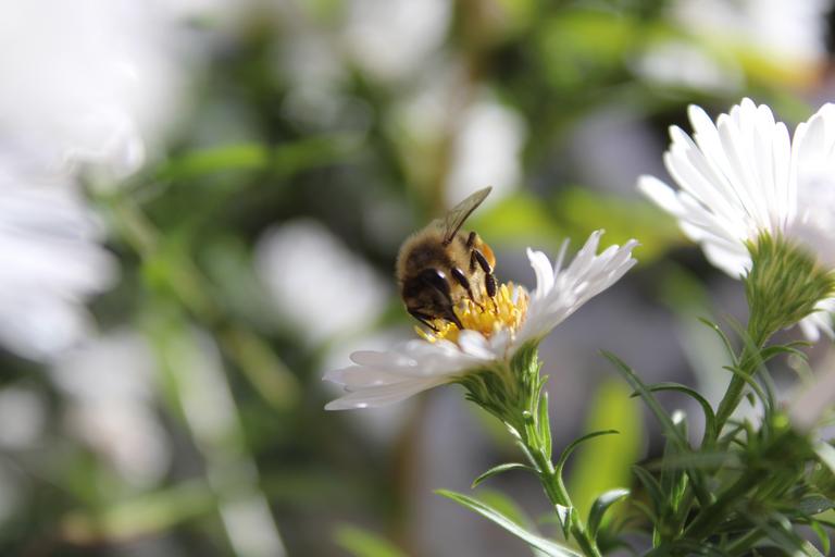 Keywords: bee insect animal plant white flowers close honey bee nature summer