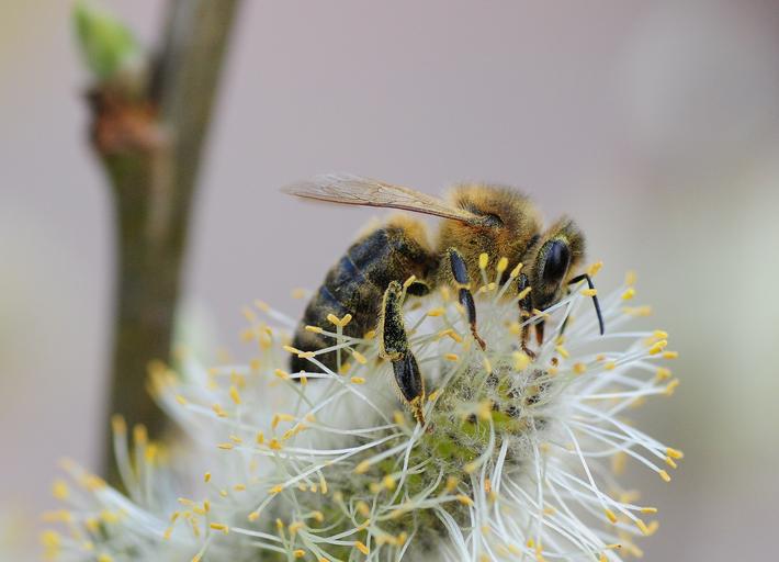 Keywords: bee insect spring collect pollen close pollen pollination honey