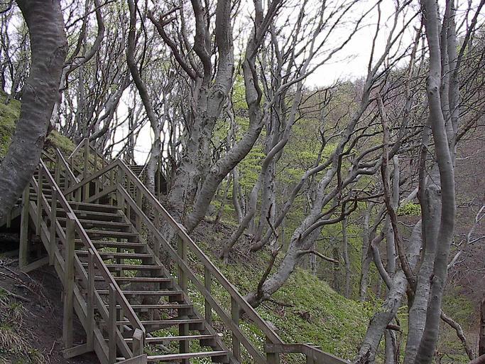 Keywords: Beech trees in møns klint.jpg Møns Klint Denmark A view up the stairs from the beach to the visitors center showing beech trees Own 2003-07-31 brianriceca public domain Møn Outside stairs in Denmark Stairways Wooden railings Exterior stair railings |