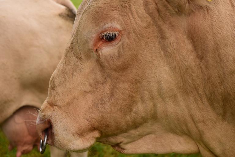 Keywords: beef cattle agriculture pasture ruminant cows livestock cow farm animal husbandry dairy cattle brown swiss head nose ring chef guide boy dictator