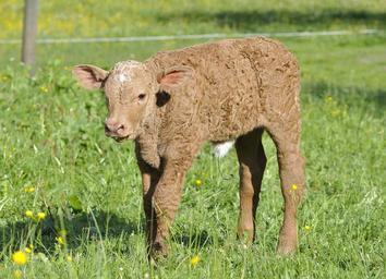 Keywords: beef young animal animal livestock cattle calf meadow grass pasture eat mammal