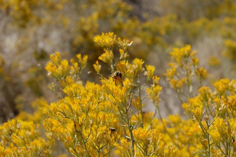 Keywords: bees bush shrub flower insect animal honey yellow flora macro pollen nectar pollination natural