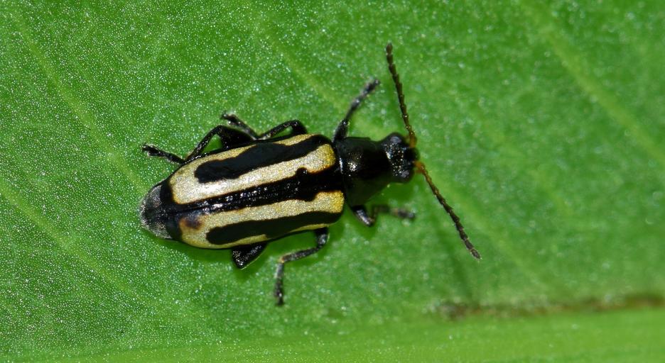 | Keywords: beetle flea beetle alligatorweed flea beetle bug insect alligatorweed tiny small creature flying insect winged insect antennae black and gold black and yellow close up contrast nature leaf green introduced species entomology biology arthropod agasicles hygrophila |