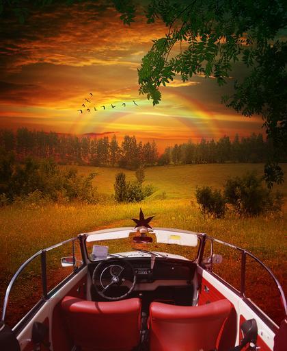 Keywords: beetle vw classic landscape sunset sky after the sunset glow red tie rod