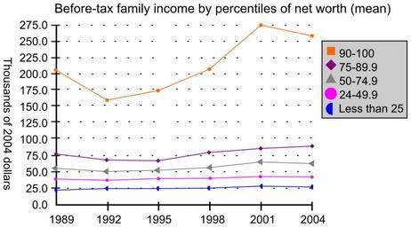 | Keywords: BeforetaxfamilyincomemeanUS1989-2004.svg en Mean before-tax family income by percentiles of net worth in the USA from 1989-2004 In other words this is US income distribution from 1989-2004 Created with OpenOffice Calc Data obtained from https //www federalreserve gov/pubs/oss/oss2/2004/Chartbook xls This chart is a retraced SVG copy of the original file File BeforetaxfamilyincomemeanUS1989-2004 gif by en User Analoguni The original was released into public domain by the author; this SVG copy is also released into the public domain 2012-01-29 own traced original by en User Analoguni Premeditated Chaos File BeforetaxfamilyincomemeanUS1989-2004 gif cc-zero Check categories 2012 January 30 en wikipedia Household_income_in_the_United_States 2 Uploaded with UploadWizard Income distribution in the United States |