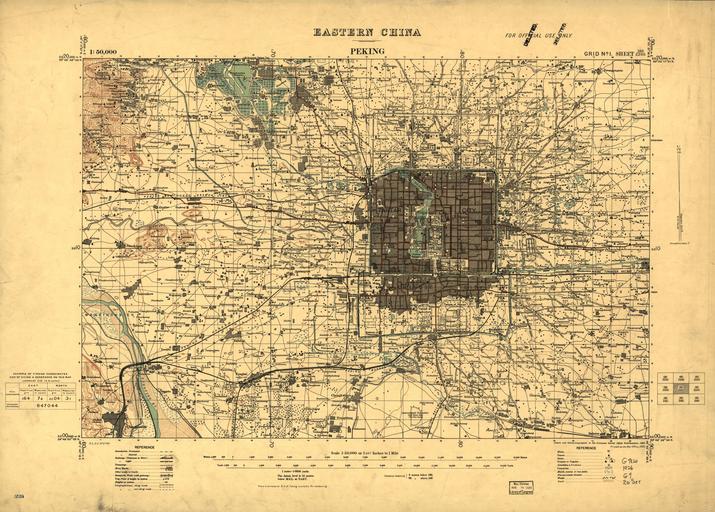 | Keywords: Beijing 1926 GBWO.jpg LargeImage en Eastern China 1 50 000 / drawn and heliographed at O S 1927 and printed at W O 1934 Great Britain War Office CREATED/PUBLISHED 3rd ed Washington D C U S Army Service 1945 NOTES For use by War and Navy Department Agencies only --On top of map Relief shown by contours and spot heights 3rd GSGS edition AMS 1 1942; AMS revision AMS 2 1932-1945 Sheets individually titled at top margin e g Tungchow Sheets individually numbered at bottom right margin e g Tungchow N3950-EE11631/11x21 British grid deleted and World Polvconic Grid added by AMS 1944 Grid No 1 --On top right of some sheets Geographical Section General Staff No 3789 --On bottom left Army Map Service U S Army Washington D C 138816 1945 --On bottom right of some sheets Includes index sheet and index to adjoining sheets Scale 1 50 000 1 metre 10936 yards ; Transverse mercator proj E 116033'--E 116054'/N 40000'--N 39050' LOC-map g7820m gct00114 gmd Great Britain War Office 1926 Old maps of Beijing PD-USGov |