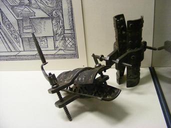 | Keywords: Beinschrauben - Mittelalterliches Kriminalmuseum Rothenburg ob der Tauber.JPG Španělská bota Spanische Stiefeln oder Beinschrauben Exponat im Mittelalterlichen Kriminalmuseum Rothenburg ob der Tauber Spanish boot own 2009-11-15 User Mattes Collections of the Kriminalmuseum Rothenburg ob der Tauber Torture instruments Metal objects Taken with Fujifilm FinePix S5700 Work by Mattes 2009 User Mattes/Contributions/Topics/Germany/Rothenburg ob der Tauber User Mattes/Contributions/Topics/ Law enforcement and justice |