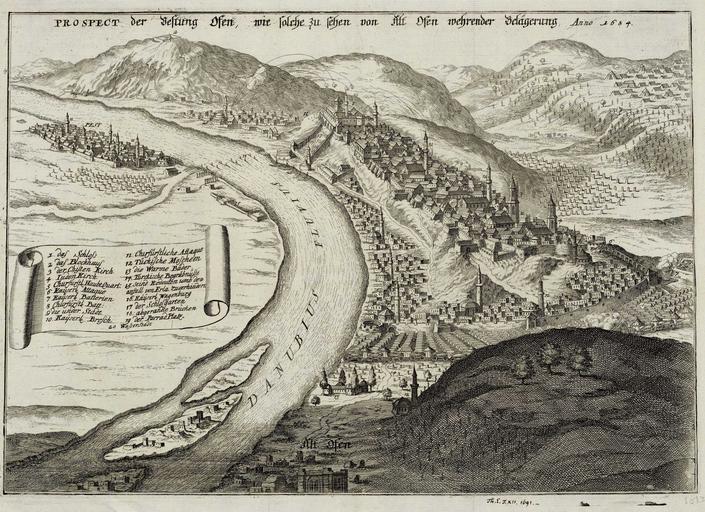 Keywords: BelagerungOfen3.jpg de Plan der Festung von Buda 1684 Pest és Buda madártávlati képe az 1684-es ostromról Hadtörténelmi Levéltár Budapest http //historic-cities huji ac il/hungary/budapest/maps/anonymous_ofen_1684 html Aus Theatrum Europaeum Band 12 Theatri Europaei Continuati Zwoelffter Theil Frankfurt am Main 1691 S 1013 Tafel 57 Siehe auch http //www bibliothek uni-augsburg de/dda/urn/uba000247/ 1691 Author Lotharingiai Károly aki a híres hadtudós Raimondo Montecuccoli mellett tanulta a hadakozást mesterének elvei szerint tervezte meg a Buda ellen indítandó hadjáratot A fő csapást a Duna mentén Buda irányába kívánta mérni A Felvidéken és a Dráva mellékén csak kisebb erőkkel szándékozott hadakozni mivel ha Budát elfoglalták Belgrádig nem volt jelentősebb vár Amennyiben tehát a hadműveletek fő irányától távolabb eső várakat rendszeres blokád alatt tartották azok idővel ostrom nélkül is elestek Lényegében elmondható hogy Belgrád 1688-ban történt bevételéig ez az alapkoncepció érvényesült Kezdetben úgy tetszett megismétlődik az előző év őszének forgatókönyve vagyis a keresztény seregek sikert sikerre halmoznak A több mint 40000 katonából álló fősereg amely magában foglalta az Esterházy János győri vicegenerális vezette tizenhat zászlóaljnyi mintegy 1600 fős magyar katonaságot is Párkánynál átkelve a Dunán június 18-án elfoglalta Visegrádot és visszaverte Kara Musztafa budai pasa támadásait Lotharingiai Károly ekkor úgy döntött hogy nem vonul közvetlenül Buda alá Átkelt a Duna bal partjára hogy az utánpótlás zavartalanságát biztosítandó elfoglalja Vácot és Pestet Eközben Bekri Musztafa aleppói pasa magyarországi szerdár csapataival13 Belgrádból Buda megerősítésére sietett A császári sereg előrenyomulásának megakadályozására közel 20000 fős hadtestet indított el de az június 27-én vereséget szenvedett s a törökök három nap múlva Pestet is elvesztették Tíz nappal később a császári haderő miután átkelt a Dunán Szentendrénél két napig tartó elkeseredett harcot vívott Musztafa szerdár erőivel döntő győzelmet azonban nem sikerült kicsikarnia 14 Buda körülzárása 1684 július 15-én kezdődött meg Az ostrom hadászati hátterének biztosításáért folyó egyhónapos küzdelem valamint Visegrád Vác és Pest helyőrséggel történő ellátása 34000 főre apasztotta a fősereg létszámát Három nappal később azonban Esterházy Pál nádor vezetésével megérkezett 9417 magyarországi katona 15 Éppen jókor mivel e kontingens kétharmadát a török harcmodort jól ismerő könnyűlovasok képezték akik jelentős szerepet játszottak a Bekri Musztafa vezette felmentő sereg felett július 22-én Érd mellett aratott győzelemben Az eddig ismert adatok szerint Budát legalább 200 ágyú és 10000 főnyi őrség védte Ezzel szemben Lotharingiai Károly hercegnek a magyarokkal együtt alig volt 47000 katonája és ebből mindössze 27000 gyalogos Badeni Lajos a Haditanács elnökének unokaöccse ifjonti hevületében nyolc nap alatt bevehetőnek vélte a várat Ám a tapasztalt katona Rüdiger Starhemberg tábornagy aki az előző évben eredményesen védte meg Bécset ilyen kis létszámú meglehetősen leharcolt és fáradt sereggel nem tartotta lehetségesnek Buda eredményes ostromát Elsősorban Érsekújvár bevételét szorgalmazta melynek blokádja jelentős erőt 4700 magyar katonát és több császári ezredet kötött le Emellett a vár őrségének portyái bizonytalanná tették a fősereg utánpótlását is A Víziváros július 19-én történt elfoglalása majd három nap múlva a felmentő sereg támadásának visszaverése még az ostromot vezető Starhemberg tábornagyot is optimistábbá tette A hadiszerencse azonban hamarosan elpártolt a keresztényektől s a problémák egyre sokasodtak Elégtelennek bizonyult a tüzérségi előkészítés a vívóárkok lassan és nem megfelelően készültek az aknászok tevékenysége pedig általában több veszteséget okozott az ostromlóknak mint a védőknek Az oszmán védők előbb Kara Musztafa majd annak eleste után Sejtán Ibrahim pasa vezetésével fanatikusán küzdöttek és nap nap utáni kitöréseikkel lehetetlenné tették nagyobb szabású roham indítását Az egyre súlyosabb veszteségek az akadozó ellátás augusztus derekára kritikus helyzetet idéztek elő az ostromló seregben Lotharingiai Károlynak a hónap közepén Bécsbe küldött jelentése szerint serege 21000 főre olvadt sok volt a beteg és a sebesült s katonasága már a vár körülzárására sem volt elegendő Maga a fővezér a lotharingiai herceg is ágynak esett Rüdiger Starhemberg aki betegen vezette a hadműveletet egyenest az ostrom abbahagyását javasolta a Haditanácsnak Úgy vélte a védők ereje már erősebb a támadókénál Szerinte csak isteni csodában lehet reménykedni abban hogy a védőket esetleg pánik fogja el és megadják magukat 16 Szeptember 13-án Miksa Emánuel bajor választófejedelem 8000 fős seregével megérkezett a Rajna mellől de Bekri Musztafa 20000 főnyi hadával újra feltűnt és szeptember 22-én Budaörs irányából a circumvallatio vagyis a körsánc nyugati része ellen intézett támadást Ezzel egyidejűleg a védők kirohanása a szövetségesek ostromműveiben is jelentős károkat okozott Néhány nap múlva Musztafa szerdárpasának sikerült 600 fős erősítést a várba juttatnia Bár eközben több egység érkezett a Német-római Birodalomból a katonai helyzet mégsem javult Végül elhatározták hogy minden erőt egy helyre koncentrálva október 4-én rohamot indítanak a déli Nagyrondella ellen de ez a támadás szintén kudarcba fulladt Eközben a török felmentő sereg állandóan zaklatta az ostromlókat Ahmed egri pasa pedig visszafoglalta Pestet s a Dunán keresztül élelmet és