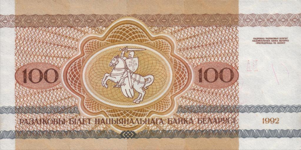 | Keywords: Belarus-1992-Bill-100-Reverse.jpg be 100 ублёў 100 roubles of Belarus 1992 es 100 rublos 100 ублей Бело уссии 1992 own scan 1992 National Bank of Republic of Belarus ациональный банк Республики Бела усь ацыянальны Банк Рэспублiкi Бела усь PD-BY-exempt banknotes Banknotes of Belarus 1992 Pahonia on banknotes Banknotes with a face value of 100 |
