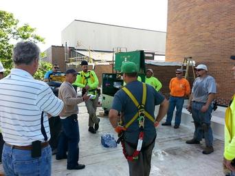 View Original:Belcher Roofing Safety Director conducted a fall protection tool box talk at a Temple University project in Philadelphia. (14166907679).jpg (1632x1224)