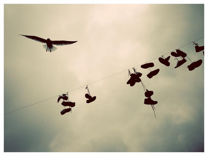 Keywords: belgium bird clothes line cord shoes sky clouds