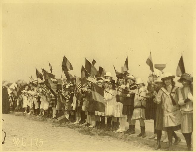 | Keywords: belgium world war one worldwarone president wilson king albert kingalbert zeebrugge monochrome Local Accession Number: 284  Description: Belgium children line the streets of Zeebrugge, Belgium and shouts of "Vive Wilson Vive L'Amerigue" went up all along the line of reception.  Photographer: U.S. Signal Corps  Source: Unknown  Size: 7x9  Medium: Print, Sepia  Date: 1919 Local Accession Number: 284  Description: Belgium children line the streets of Zeebrugge, Belgium and shouts of "Vive Wilson Vive L'Amerigue" went up all along the line of reception.  Photographer: U.S. Signal Corps  Source: Unknown  Size: 7x9  Medium: Print, Sepia  Date: 1919 |