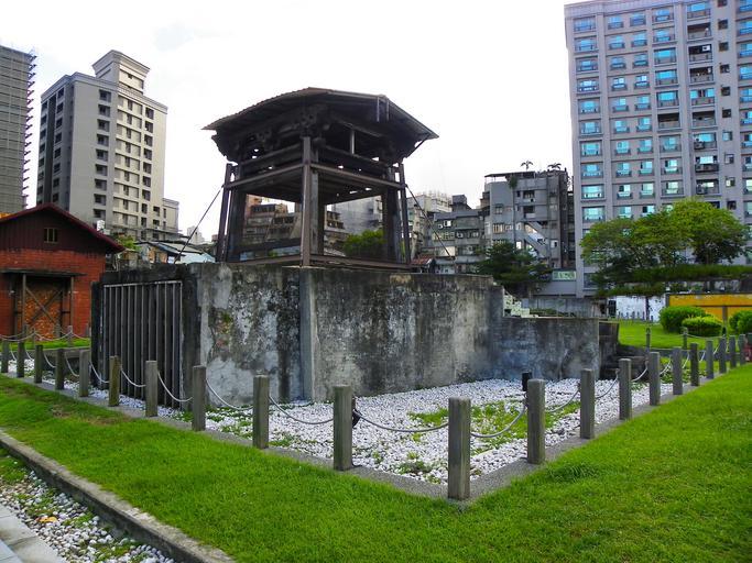 Keywords: Bell Tower of Former Taipei's Nishi Honganji 20100808.JPG zh-tw 萬華406號廣場西南的理教公 (原臺北西 願寺)鐘樓遺跡,後方是舊樹心 館 2010-08-08 16 53 39 Own 玄史生 Wanhua Plaza No 406 in 2010 Bell towers in Taiwan 玄史生写 文庫 Taken with Kodak EasyShare Z980 Uploaded with UploadWizard cc-zero |