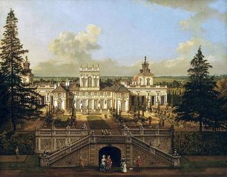 | Keywords: Bellotto Wilanów Palace as seen from the garden.jpg Artwork Creator Bernardo Bellotto 1776 oil canvas cm 84 108 Institution Warsaw Royal Castle Canaletto Room accession number ZKW 448 object history credit line Stéphane Loire Hanna Małachowicz Andrzej Rottermund 2004 Bernardo Bellotto a Venetian painter in Warsaw Musée du Louvre ISBN 88-74391-23-4 PD-old-100 DEFAULTSORT 1776; Wilanów Palace Paintings in the Canaletto Room 18th-century paintings of buildings History of the Wilanów Palace Baroque gardens in Poland Paintings of palaces Terrace construction Wilanów |