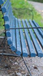 Keywords: bench blue outdoor summer sit relax park scene wood leisure rest