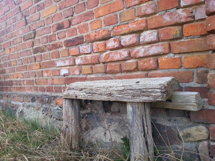 Keywords: bench old brick village loneliness wooden