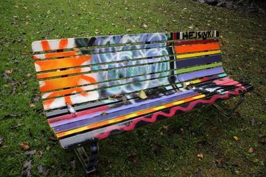 Keywords: bench park graffiti lawn nature