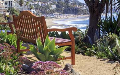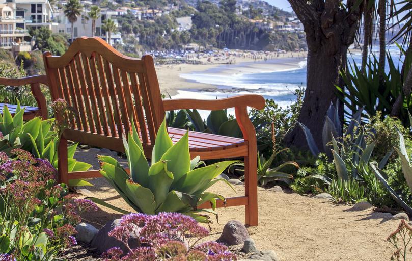 Keywords: bench relax sunny beach park outdoors leisure nature green flowers
