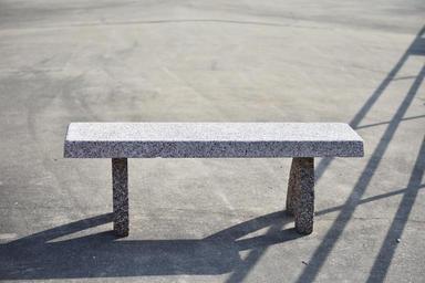 Keywords: bench shadow gravel park seat white chair outdoors stone rest cement