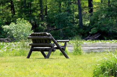 Keywords: bench wooden bench lakeside seat relax peaceful calm serene bucolic