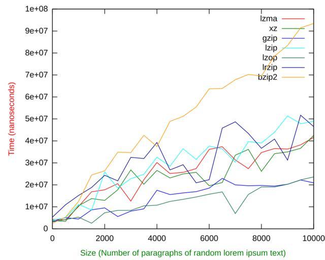 | Keywords: Benchmark common compression formats - Decompressing speed.svg en This is a comparison of popular compression formats by how many nanoseconds it takes to decompress each format The horizontal scale shows number or paragraphs containing random lorem ipsum text 2011-09-07 own AzaToth Following script was used to make the plots They where run on a mounted tmpfs dir <source lang bash > /bin/bash rm -f compress decompress factor for testnum in seq 0 500 10000 ; do lorem -p testnum > data for archiver in bzip2 lzma xz gzip lzip lzop lrzip; do case archiver in bzip2 suffix bz2;; lzma suffix lzma;; xz suffix xz;; gzip suffix gz;; lzip suffix lz;; lzop suffix lzo;; lrzip suffix lrz;; esac cp data current- testnum s1 stat -c s current- testnum c date + s N archiver current- testnum d date + s N total echo d- c bc echo testnum total >> archiver compress s2 stat -c s current- testnum suffix factor echo scale 10; s1/ s2 bc echo testnum factor >> archiver factor rm -f current- testnum c date + s N archiver -d current- testnum suffix d date + s N total echo d- c bc echo testnum total >> archiver decompress rm -f current rm -f bz2 lzma gz xz lzo lz lrz done done gnuplot < echo set terminal svg;set ylabel 'Time nanoseconds ' textcolor lt 1; set xlabel 'Size Number of paragraphs of random lorem ipsum text ' textcolor lt 2;plot 'lzma compress' title 'lzma' with lines 'xz compress' title 'xz' with lines 'gzip compress' title 'gzip' with lines 'lzip compress' title 'lzip' with lines 'lzop compress' title 'lzop' with lines 'lrzip compress' title 'lrzip' with lines 'bzip2 compress' title 'bzip2' with lines > compress svg gnuplot < echo set terminal svg;set ylabel 'Time nanoseconds ' textcolor lt 1; set xlabel 'Size Number of paragraphs of random lorem ipsum text ' textcolor lt 2;plot 'lzma decompress' title 'lzma' with lines 'xz decompress' title 'xz' with lines 'gzip decompress' title 'gzip' with lines 'lzip decompress' title 'lzip' with lines 'lzop decompress' title 'lzop' with lines 'lrzip decompress' title 'lrzip' with lines 'bzip2 decompress' title 'bzip2' with lines > decompress svg gnuplot < echo set terminal svg;set ylabel 'Compression factor' textcolor lt 1; set xlabel 'Size Number of paragraphs of random lorem ipsum text ' textcolor lt 2;plot 'lzma factor' title 'lzma' with lines 'xz factor' title 'xz' with lines 'gzip factor' title 'gzip' with lines 'lzip factor' title 'lzip' with lines 'lzop factor' title 'lzop' with lines 'lrzip factor' title 'lrzip' with lines 'bzip2 factor' title 'bzip2' with lines > factor svg </source> cc-zero Uploaded_with_UploadWizard Gnuplot_diagrams Images with BASH source code |