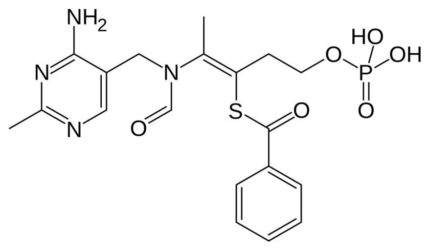 Keywords: Benfotiamine.svg Skeletal formula of benfotiamine Created using http //www acdlabs com/download/chemsk html ACD/ChemSketch 10 0 and Inkscape Own 2007-07-25 Fvasconcellos 23 24 25 July 2007 UTC Organophosphates Thiamine