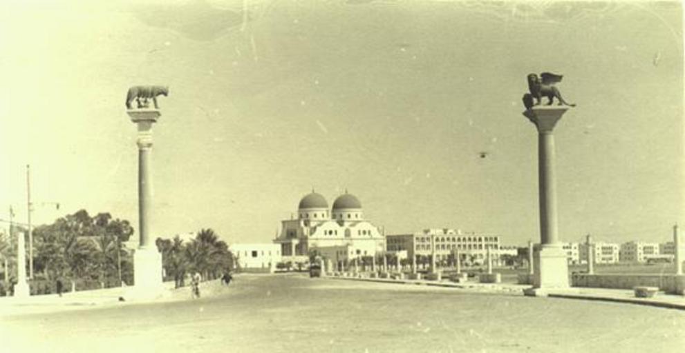 Keywords: Benghazi, Victory st..jpg en Victory st in Benghazi Libya 1941 Via Vittoria a Bengasi Libia si apriva con due colonne erette dal regime coloniale italiano sorreggenti la Lupa capitolina e il Leone di San Marco in questa foto del 1941 http //www tibesti-libya com/content/view/106/75/ tibesti-libya com Author 1941 PD-Libya Benghazi 1940s History of Benghazi 1940s Streets in Benghazi Statues in Benghazi Capitoline she-wolf Statues of the Lion of Saint Mark Benghazi Cathedral Monuments and memorials in Libya 1941 in Libya Columns in Libya Italian architecture in Libya ImageNote 1 223 155 105 74 567 293 2 Cattedrale ImageNoteEnd 1 |