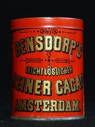 | Keywords: Bensdorps leight loslicher Reiner Cacao Amsterdam, oranje rond blikje, foto4.JPG Very old product that is not produced and not sold any more Note that some tins may look the same but when looked for carefully there are some slight differences Photographed at a collector of Droste memorabilia and old tin cans For more info see http //www tincollectors nl/ tincollectors nl or email info tincollectors nl own 2014-02-08 13 03 34 Alf van Beem CC-Zero Trademarked Bensdorp cocoa tins Bensdorp cacao |