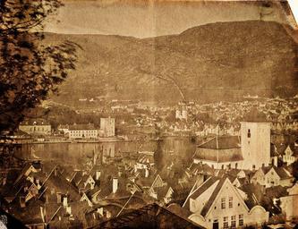 | Keywords: bergen mariakirken "Parti af Bergen. Sett fra Frederiksberg." Foto Mathias Hansen. Illustreret Nyhedsblad Nr. 1 1857 s. 5. Arkivreferanse: PA17U1_3. Original billedtekst: Billeder fra Kronprindsens Reise. Parti af Bergen (Efter Photographi af M. Hansen) "Det Billede, man her seer, fremstiller et Parti af Bergen, taget fra Frederiksberg. I Forgrunden har man endeel Huse af Strandsiden og tilhøire Nykirken. I Midten gaar Vaagen med den bekjendte Tydskebrygge og hiinsides den er Bryggesiden, Byens ældste Deel, og Fløifjeldet i Baggrunden. Til venstre på hiin Side af Vaagen seer man Dele af Slottet, først Magazinsbygningen (den fordums prægtige Kongehal), saa længere tilhøire Kommandantboligen og det urigtigen saakaldte Walkendorfs Taarn, hvis ældste Deel er fra Haakon Haakonsøns Tid, medens den yngre er opført mellem Aarene 1563 og 1568 af Erik Rosenkrantz, efter hvem det hele Taarn også lige ind i det forrige Aarhundrede bar Navn. Endnu længere tilhøire omtrent i Billedets Midte hæve sig Tydskekirkens tvende Taarne." Url: www.arkivverket.no/arkivverket/Bruk-av-arkiv/Nettutstilli... "Parti af Bergen. Sett fra Frederiksberg." Foto Mathias Hansen. Illustreret Nyhedsblad Nr. 1 1857 s. 5. Arkivreferanse: PA17U1_3. Original billedtekst: Billeder fra Kronprindsens Reise. Parti af Bergen (Efter Photographi af M. Hansen) "Det Billede, man her seer, fremstiller et Parti af Bergen, taget fra Frederiksberg. I Forgrunden har man endeel Huse af Strandsiden og tilhøire Nykirken. I Midten gaar Vaagen med den bekjendte Tydskebrygge og hiinsides den er Bryggesiden, Byens ældste Deel, og Fløifjeldet i Baggrunden. Til venstre på hiin Side af Vaagen seer man Dele af Slottet, først Magazinsbygningen (den fordums prægtige Kongehal), saa længere tilhøire Kommandantboligen og det urigtigen saakaldte Walkendorfs Taarn, hvis ældste Deel er fra Haakon Haakonsøns Tid, medens den yngre er opført mellem Aarene 1563 og 1568 af Erik Rosenkrantz, efter hvem det hele Taarn også lige ind i det forrige Aarhundrede bar Navn. Endnu længere tilhøire omtrent i Billedets Midte hæve sig Tydskekirkens tvende Taarne." Url: www.arkivverket.no/arkivverket/Bruk-av-arkiv/Nettutstilli... |