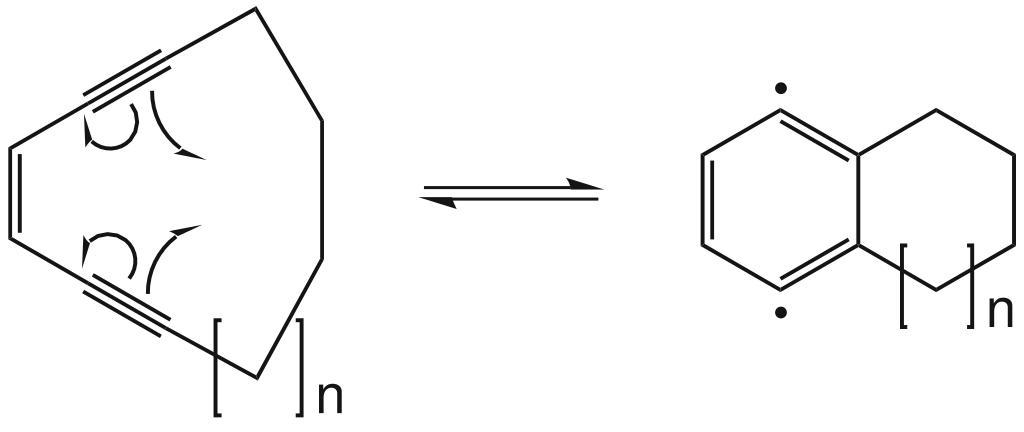 Keywords: Bergman cycloaromatization ring.svg en Additional picture for the Bergman cyclization de Zusätzliches Bild für die Bergman-Cyclisierung selbst erstellt mit ChemBioOffice 11 LinuxCLP 2011-05-24 Cc-zero Bergman cyclization
