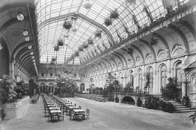| Keywords: Berlin, Friedrichstrasse, Central-Hotel, Wintergarten, Hermann Rueckwardt, 1881.jpg de Wintergarten des Central Hotel in der Friedrichstraße in Berlin im Jahr 1881 In diesem Wintergarten residierte ab 1887 eines der bekanntesten Berliner Varietés Hotel und Wintergarten wurden im Zweiten Weltkrieg zerstört Foto von Hermann Rückwardt en Winter garden of the Central Hotel on Friedrichstraße in Berlin in 1881 Photo by Hermann Rückwardt Starting in 1887 the Winter Garden became one of Berlin's best-known variety theaters Hotel and winter garden were destroyed in WWII Photo by Hermann Rückwardt Scan from book Landesdenkmalamt Berlin Ed Denkmale in Berlin Bezirk Mitte Ortsteil Mitte Petersberg 2003 p 112 Creator Hermann Rückwardt 1881 PD-old Wintergarten Varieté Hermann Rückwardt |