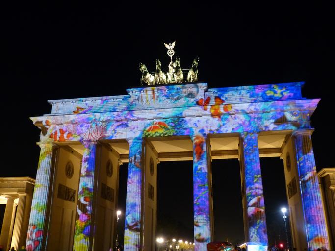 Keywords: berlin goal landmark brandenburg gate building berlin at night night dark darkness capital places of interest festival of lights evening