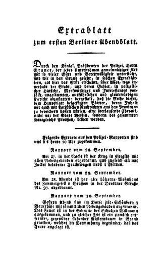 Keywords: Berliner Abendblätter 1810 005.jpg Berliner Abendblätter Berlin Julius Eduard Hitzig Berliner_Abendblätter_1810_ jpg 004 006 http //www presse uni-wuerzburg de/einblick/abendblaetter/ 1810-1811 Heinrich von Kleist Author died more than 70 years ago - public domain PD-old-100 Berliner Abendblätter |