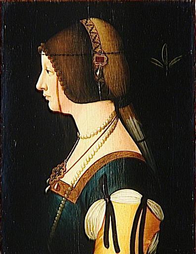 | Keywords: Bernardino dei Conti - Bianca Maria Sforza (Louvre).jpg Bernardino dei Conti<br> creator Ambrogio de Predis formerly attributed to 1475 1530 oil fir cm 47 5 36 8 Institution Louvre Object history ProvenanceEvent 1914 acquisition Louvre 000PE024691 <gallery> Ambrogio de Predis 002 jpg Workshop of Ambrogio de Predis Kunsthistorisches Museum </gallery> PD-old-100 DEFAULTSORT Conti Bianca Maria Sforza Bianca Maria Sforza 01 Bernardino dei Conti Renaissance profile portraits of women | ||||