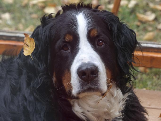 Keywords: bernese mountain dog head portrait canine dog pet animal mammal three colored cute autumn leaves season golden autumn fall colors