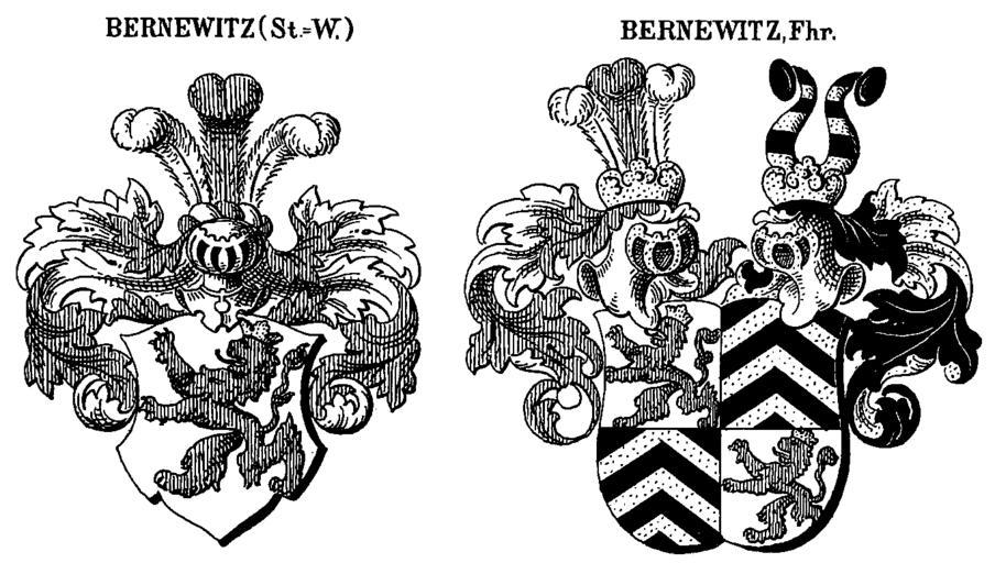 | Keywords: Bernewitz-Wappen2 Sm.png Stamm- und Freiherrenwappen der von Bernewitz J Siebmacher's grosses und allgemeines Wappenbuch II Band 2 Abteilung; Der Adel des Herzogthums Braunschweig; Verfasser Ad M Hildebrandt; Publikation Nürnberg Bauer Raspe 1869 Johann Siebmacher - vereinzelt und bearbeitet von Dorado This image is in the public domain due to its age PD-old Wappenrecht Coats of arms of families of Germany - B | ||||