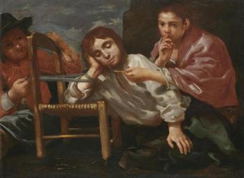| Keywords: Bernhardt Keil - Two children playing a practical joke on a sleeping boy.jpg Artwork Creator Bernhard Keil oil canvas cm 73 98 accession number object history Anonymous sale 'The Property of a Lady' London Christie's 25 March 1977 lot 26;<br/>Anonymous sale London Christie's 14 April 1978 lot 30;<br/>Carrick Hall Dublin credit line exhibition history http //www sothebys com/en/auctions/ecatalogue/2007/old-master-paintings-l07030/lot 97 html Sotheby's London 26 April 2007 lot 97 PD-old-100 DEFAULTSORT Keil Bernhard; Genre; Sotheby's 2007 Bernhard Keil Genre paintings Portrait paintings of children Images from Sotheby's |