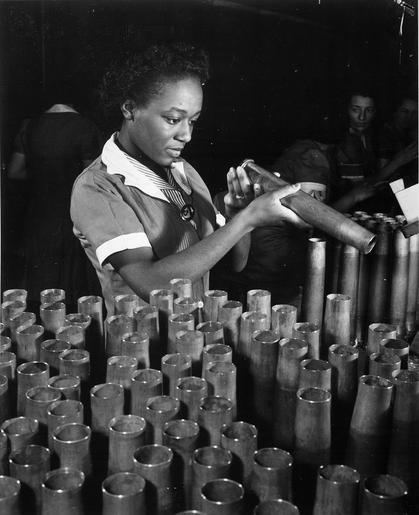 | Keywords: Bertha Stallworth - NARA - 535805.tif Local identifier 208-NP-1WW-1 Office for Emergency Management Office of War Information Domestic Operations Branch News Bureau 06/13/1942 - 09/15/1945 Still Picture Records Section Special Media Archives Services Division NWCS-S National Archives at College Park 8601 Adelphi Road College Park MD 20740-6001 other date circa 1941 1945 Record group Record Group 208 Records of the Office of War Information 1926 - 1951 Record group ARC 535 Negro Activities in Industry Government and the Armed Forces compiled 1941 - 1945 Series ARC 535799 Variant control numbers NAIL Control Number NWDNS-208-NP-1WW-1<br /> Select List Identifier AFRO/AM LIST 253 General notes Scope and content File unit File unit ARC yes <gallery> File Bertha_Stallworth _age_21 _shown_inspecting_end_of_40mm_artillery_cartridge_case_at_Frankford_Arsenal _ca _1941_-_ca _-_NARA_-_535805 tif tif original File Bertha_Stallworth _age_21 _shown_inspecting_end_of_40mm_artillery_cartridge_case_at_Frankford_Arsenal _ca _1941_-_ca _-_NARA_-_535805 jpg jpg </gallery> NARA-cooperation PD-USGov War workers in the United States Women at work in the United States Temporary for Cat-a-lot - Female humans Female shirts Black and white photographs of female at work World War II home front in the United States NARA TIF images with categorized JPGs Frankford Arsenal |