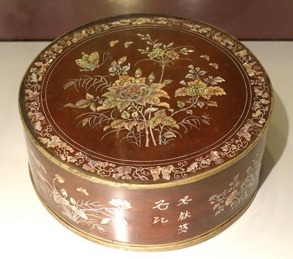Keywords: Betel pot, Northern Vietnam, early 20th century, wood inlaid with mother of pearl - Vietnamese Women's Museum - Hanoi, Vietnam - DSC04176.JPG en Exhibit in the Vietnamese Women's Museum Hanoi Vietnam Photography was permitted in the museum without restriction 2014-08-04 03 49 12 own Daderot other versions cc-zero Uploaded with UploadWizard Wooden containers in the Vietnamese Women's Museum Taken with Sony DSC-RX100 III