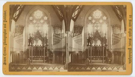 Keywords: stereographs philadelphia churches organ galleries organgalleries beth eden baptist church bethedenbaptistchurch altars james cremer jamescremer Shows the interior of Beth Eden Baptist Church in Philadelphia. View includes an arched ceiling, stained glass windows, carved decorative trim and organ pipes.Two chairs and a pulpit on a platform are also visible. Accession number: P.2011.47.725 Shows the interior of Beth Eden Baptist Church in Philadelphia. View includes an arched ceiling, stained glass windows, carved decorative trim and organ pipes.Two chairs and a pulpit on a platform are also visible. Accession number: P.2011.47.725 |