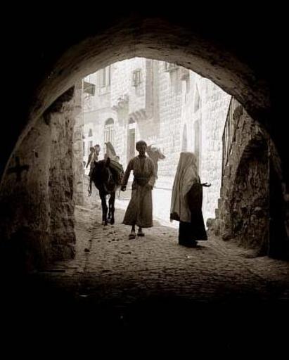 Keywords: Bethlehem gateway people donkey 1898.jpg given at the source No Room at the Inn<br/> photograph of a man and woman with Donkey entering Bethlehem It was created in 1898 The photograph is reminiscent of Mary and Joseph text from http //www old-picture com/middle-east/Room-the-Inn-No-001 htm same source Note As the source shows a number of 1898 pictures reminiscent of the biblical story in and around Bethlehem featuring a couple a donkey sometimes a baby etc it seems likely that at least some of the pictures were staged http //www old-picture com/middle-east/Room-the-Inn-No-001 htm picture labeled there Room-the jpg 1898 not indicated author died more than 70 years ago PD-old Historical images of Bethlehem |
