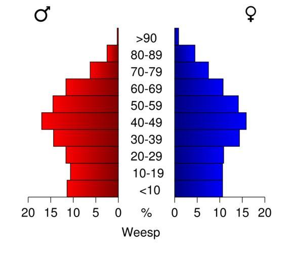 Keywords: Bevolkingspiramide 2008 - CBS gemeentecode 0457.svg Age pyramids for the municipalities in the Netherlands 1/1/2008 Created in svg with own script Statistics provided by Centraal Bureau voor de Statistiek Voorburg/Heerlen Source Tabel Bevolking; burgerlijke staat geslacht leeftijd en regio 1 januari Tabeltoelichting Gewijzigd op 14 mei 2008 Verschijningsfrequentie per jaar http //statline cbs nl/StatWeb/publication/default aspx DM SLNL PA 03759NED D1 1-2 2c15 D2 118-128 D3 1-4 2c8-9 2c13-19 2c21 2c24 2c26 2c28-30 2c33-36 2c38-40 2c43-44 2c48-49 2c52 2c54 2c56 2c59 2c62 2c64 2c67-71 2c78 2c80-84 2c86-89 2c91 2c93-98 2c101 2c103-107 2c109 2c111-112 2c115 2c118-119 2c121-124 2c126-127 2c130 2c132-134 2c136 2c138-141 2c143-144 2c146 2c151 2c154 2c156-157 2c159-160 2c162-163 2c166-167 2c169 2c171 2c177-179 2c181-182 2c184 2c187-189 2c191-195 2c198 2c201 2c204-205 2c207 2c209 2c211 2c214 2c218-219 2c221-224 2c226 2c228-230 2c233 2c236 2c241-243 2c246-251 2c253 2c257-262 2c265 2c271-274 2c276 2c278 2c282 2c284 2c286-290 2c292 2c294 2c296 2c298-299 2c301-303 2c306 2c312-314 2c317-318 2c321-322 2c327 2c329 2c332 2c334-335 2c337 2c339 2c344-346 2c349-353 2c355-358 2c361 2c363-366 2c368 2c370-373 2c380 2c382-383 2c386-391 2c393-395 2c399 2c403-406 2c408-409 2c412 2c416-417 2c419 2c421-422 2c424 2c426-430 2c432-433 2c439-441 2c447-448 2c450-452 2c455-456 2c458-459 2c462-463 2c465 2c468-469 2c471 2c476 2c478-479 2c481-482 2c484-486 2c489 2c491-492 2c496 2c498-500 2c503 2c505-507 2c512-516 2c519-521 2c523-524 2c528-532 2c534 2c536 2c540 2c542-543 2c546-550 2c552-555 2c560-561 2c564-565 2c567-568 2c572-573 2c577-580 2c586 2c588-594 2c597 2c599-603 2c605 2c609-610 2c612-614 2c617 2c619 2c621-624 2c628 2c630-631 2c633 2c636-637 2c640 2c646-647 2c649-651 2c653 2c655-661 2c663-664 2c666 2c668-670 2c673 2c675-681 2c683-684 2c686 2c689-690 2c693 2c695-696 2c698 2c701-702 2c706-710 2c717 2c719 2c721-722 2c724-725 2c727 2c732-733 2c735-742 2c746 2c750-752 2c756-757 2c759 2c761 2c763-764 2c766-769 2c771-772 2c774-775 2c777 2c779 2c783 2c785-788 2c791-793 2c796-797 D4 l HDR T STB G1 2cG2 2cG3 VW D StatLine own work using CBS data 2009-01 Michiel1972 Own work all rights released Public domain Population pyramids of municipalities of the Netherlands 2008 |