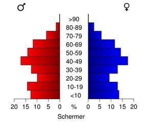 Keywords: Bevolkingspiramide 2008 - CBS gemeentecode 0458.svg Age pyramids for the municipalities in the Netherlands 1/1/2008 Created in svg with own script Statistics provided by Centraal Bureau voor de Statistiek Voorburg/Heerlen Source Tabel Bevolking; burgerlijke staat geslacht leeftijd en regio 1 januari Tabeltoelichting Gewijzigd op 14 mei 2008 Verschijningsfrequentie per jaar http //statline cbs nl/StatWeb/publication/default aspx DM SLNL PA 03759NED D1 1-2 2c15 D2 118-128 D3 1-4 2c8-9 2c13-19 2c21 2c24 2c26 2c28-30 2c33-36 2c38-40 2c43-44 2c48-49 2c52 2c54 2c56 2c59 2c62 2c64 2c67-71 2c78 2c80-84 2c86-89 2c91 2c93-98 2c101 2c103-107 2c109 2c111-112 2c115 2c118-119 2c121-124 2c126-127 2c130 2c132-134 2c136 2c138-141 2c143-144 2c146 2c151 2c154 2c156-157 2c159-160 2c162-163 2c166-167 2c169 2c171 2c177-179 2c181-182 2c184 2c187-189 2c191-195 2c198 2c201 2c204-205 2c207 2c209 2c211 2c214 2c218-219 2c221-224 2c226 2c228-230 2c233 2c236 2c241-243 2c246-251 2c253 2c257-262 2c265 2c271-274 2c276 2c278 2c282 2c284 2c286-290 2c292 2c294 2c296 2c298-299 2c301-303 2c306 2c312-314 2c317-318 2c321-322 2c327 2c329 2c332 2c334-335 2c337 2c339 2c344-346 2c349-353 2c355-358 2c361 2c363-366 2c368 2c370-373 2c380 2c382-383 2c386-391 2c393-395 2c399 2c403-406 2c408-409 2c412 2c416-417 2c419 2c421-422 2c424 2c426-430 2c432-433 2c439-441 2c447-448 2c450-452 2c455-456 2c458-459 2c462-463 2c465 2c468-469 2c471 2c476 2c478-479 2c481-482 2c484-486 2c489 2c491-492 2c496 2c498-500 2c503 2c505-507 2c512-516 2c519-521 2c523-524 2c528-532 2c534 2c536 2c540 2c542-543 2c546-550 2c552-555 2c560-561 2c564-565 2c567-568 2c572-573 2c577-580 2c586 2c588-594 2c597 2c599-603 2c605 2c609-610 2c612-614 2c617 2c619 2c621-624 2c628 2c630-631 2c633 2c636-637 2c640 2c646-647 2c649-651 2c653 2c655-661 2c663-664 2c666 2c668-670 2c673 2c675-681 2c683-684 2c686 2c689-690 2c693 2c695-696 2c698 2c701-702 2c706-710 2c717 2c719 2c721-722 2c724-725 2c727 2c732-733 2c735-742 2c746 2c750-752 2c756-757 2c759 2c761 2c763-764 2c766-769 2c771-772 2c774-775 2c777 2c779 2c783 2c785-788 2c791-793 2c796-797 D4 l HDR T STB G1 2cG2 2cG3 VW D StatLine own work using CBS data 2009-01 Michiel1972 Own work all rights released Public domain Population pyramids of municipalities of the Netherlands 2008 |