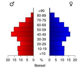 | Keywords: Bevolkingspiramide 2008 - CBS gemeentecode 0889.svg Age pyramids for the municipalities in the Netherlands 1/1/2008 Created in svg with own script Statistics provided by Centraal Bureau voor de Statistiek Voorburg/Heerlen Source Tabel Bevolking; burgerlijke staat geslacht leeftijd en regio 1 januari Tabeltoelichting Gewijzigd op 14 mei 2008 Verschijningsfrequentie per jaar http //statline cbs nl/StatWeb/publication/default aspx DM SLNL PA 03759NED D1 1-2 2c15 D2 118-128 D3 1-4 2c8-9 2c13-19 2c21 2c24 2c26 2c28-30 2c33-36 2c38-40 2c43-44 2c48-49 2c52 2c54 2c56 2c59 2c62 2c64 2c67-71 2c78 2c80-84 2c86-89 2c91 2c93-98 2c101 2c103-107 2c109 2c111-112 2c115 2c118-119 2c121-124 2c126-127 2c130 2c132-134 2c136 2c138-141 2c143-144 2c146 2c151 2c154 2c156-157 2c159-160 2c162-163 2c166-167 2c169 2c171 2c177-179 2c181-182 2c184 2c187-189 2c191-195 2c198 2c201 2c204-205 2c207 2c209 2c211 2c214 2c218-219 2c221-224 2c226 2c228-230 2c233 2c236 2c241-243 2c246-251 2c253 2c257-262 2c265 2c271-274 2c276 2c278 2c282 2c284 2c286-290 2c292 2c294 2c296 2c298-299 2c301-303 2c306 2c312-314 2c317-318 2c321-322 2c327 2c329 2c332 2c334-335 2c337 2c339 2c344-346 2c349-353 2c355-358 2c361 2c363-366 2c368 2c370-373 2c380 2c382-383 2c386-391 2c393-395 2c399 2c403-406 2c408-409 2c412 2c416-417 2c419 2c421-422 2c424 2c426-430 2c432-433 2c439-441 2c447-448 2c450-452 2c455-456 2c458-459 2c462-463 2c465 2c468-469 2c471 2c476 2c478-479 2c481-482 2c484-486 2c489 2c491-492 2c496 2c498-500 2c503 2c505-507 2c512-516 2c519-521 2c523-524 2c528-532 2c534 2c536 2c540 2c542-543 2c546-550 2c552-555 2c560-561 2c564-565 2c567-568 2c572-573 2c577-580 2c586 2c588-594 2c597 2c599-603 2c605 2c609-610 2c612-614 2c617 2c619 2c621-624 2c628 2c630-631 2c633 2c636-637 2c640 2c646-647 2c649-651 2c653 2c655-661 2c663-664 2c666 2c668-670 2c673 2c675-681 2c683-684 2c686 2c689-690 2c693 2c695-696 2c698 2c701-702 2c706-710 2c717 2c719 2c721-722 2c724-725 2c727 2c732-733 2c735-742 2c746 2c750-752 2c756-757 2c759 2c761 2c763-764 2c766-769 2c771-772 2c774-775 2c777 2c779 2c783 2c785-788 2c791-793 2c796-797 D4 l HDR T STB G1 2cG2 2cG3 VW D StatLine own work using CBS data 2009-01 Michiel1972 Own work all rights released Public domain Population pyramids of municipalities of the Netherlands 2008 |